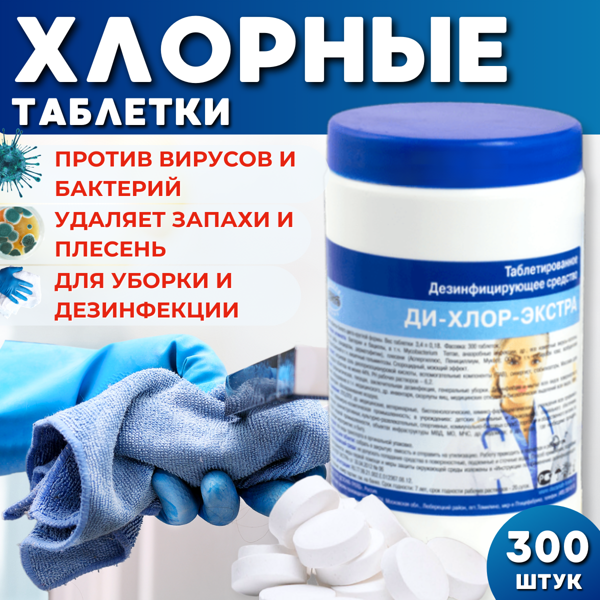 Ди-хлор-экстра 300 таблеток, хлорные таблетки для дезинфекции и уборки информация: