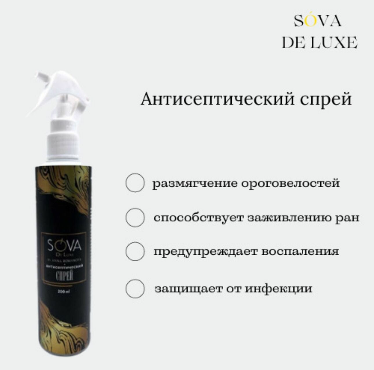 Антисептическое средство Sova De Luxe, с пантенолом, спрей, для маникюра и педикюра, 200мл информация:
