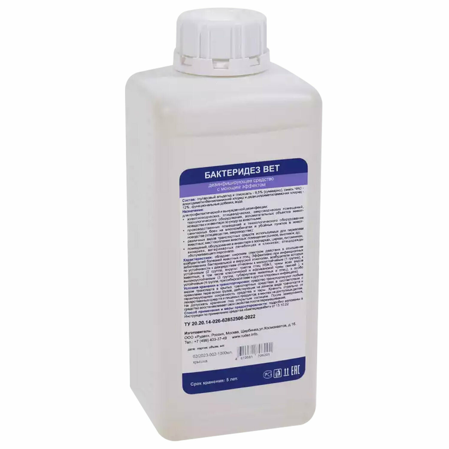 Средство дезинфицирующее для ветеринарии 1 л, бактеридез ВЕТ, концентрат информация: