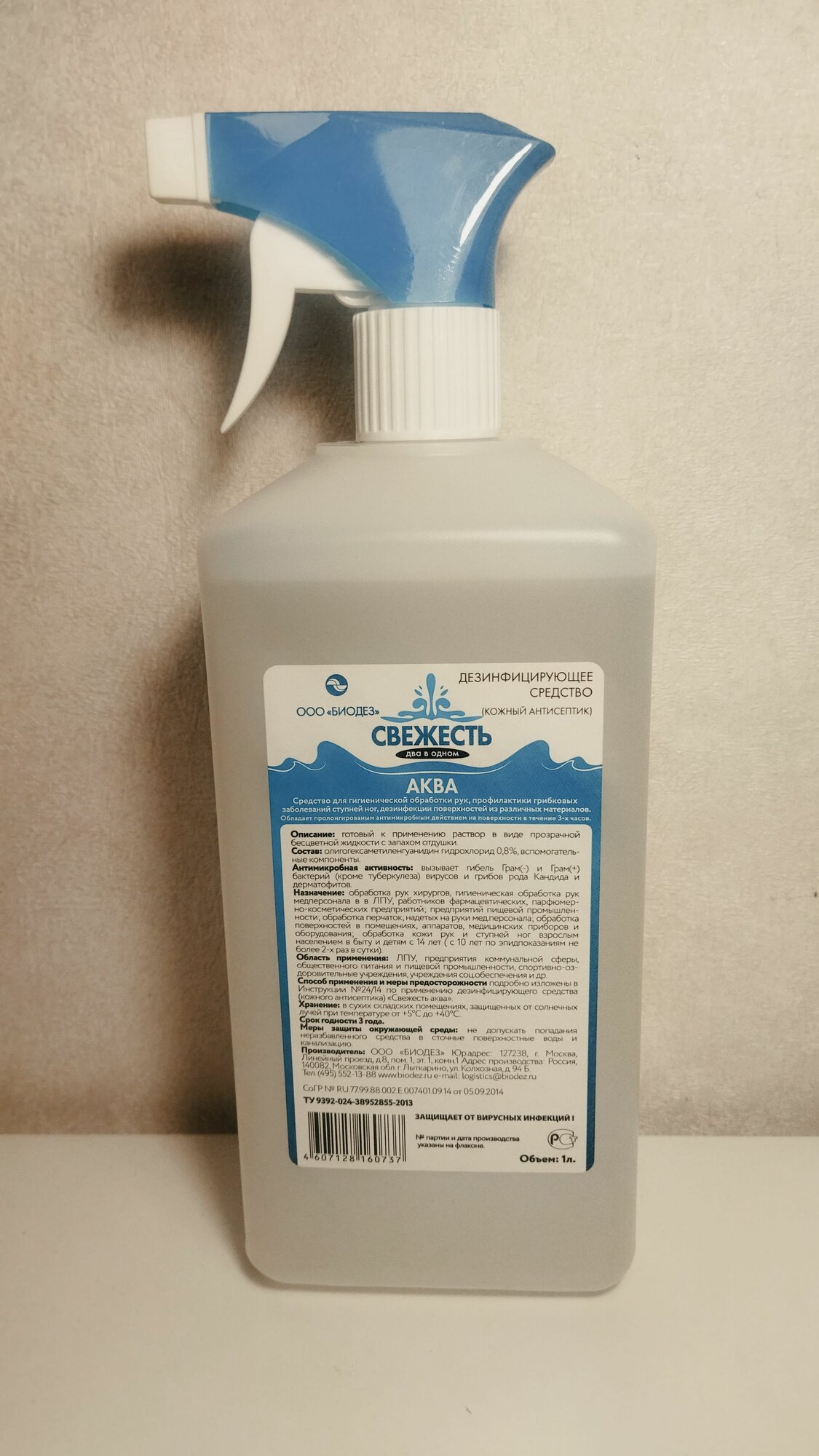 Кожный антисептик-свежесть аква 1л биодез. информация:
