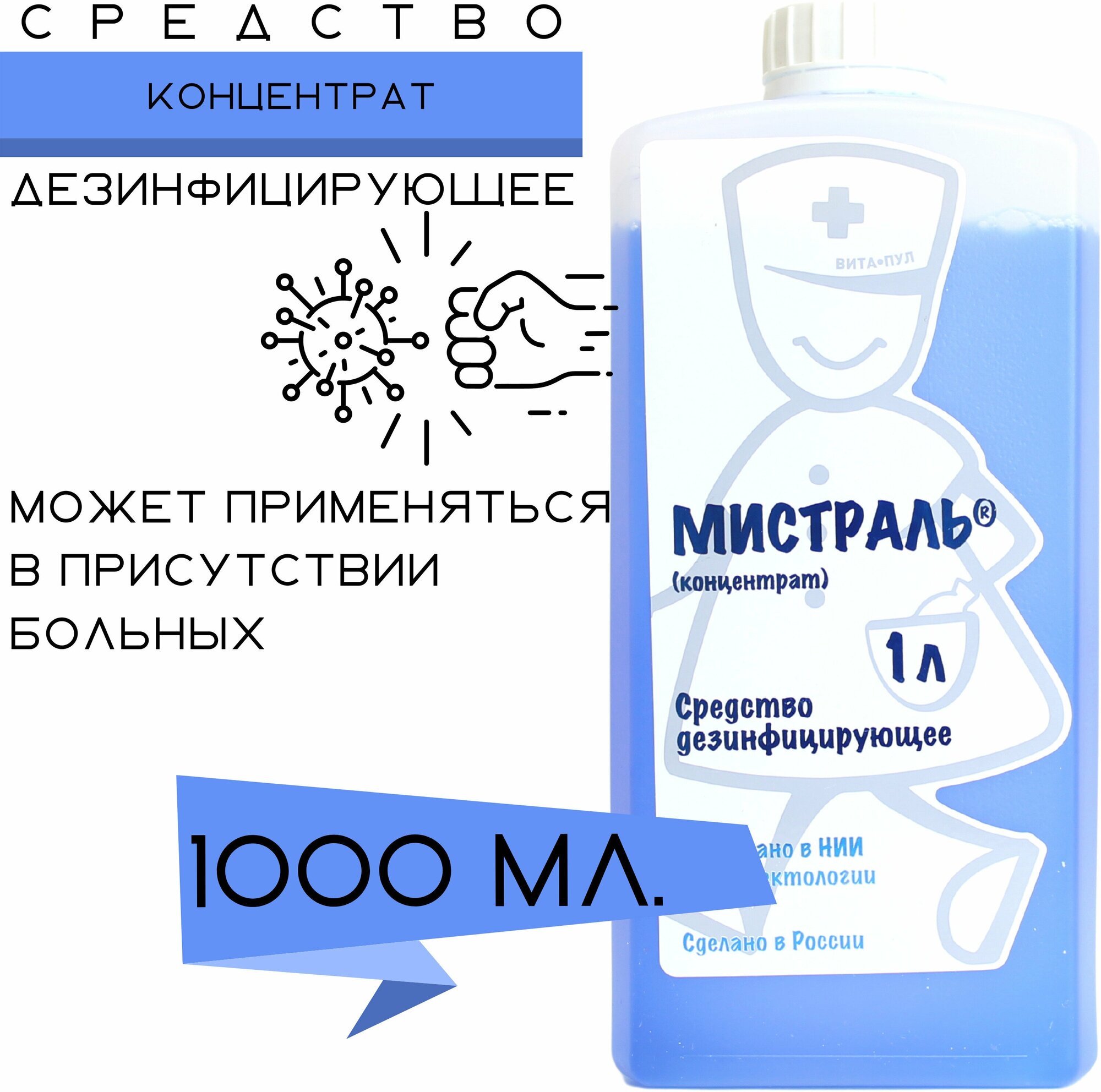 ВИТА-ПУЛ Дезинфицирующее средство Мистраль 1л Концентрат для поверхностей 00180 информация: