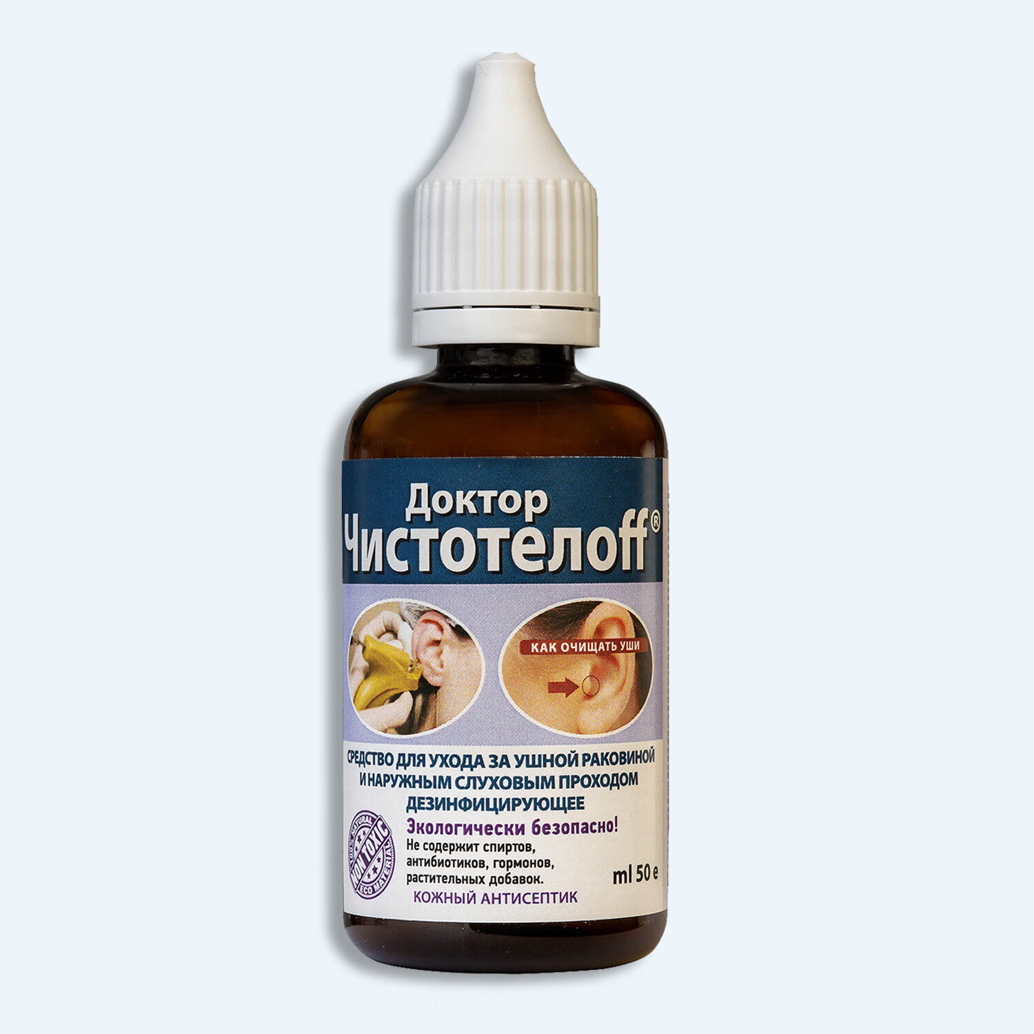 Отзывы на Дезинфицирующее средство для ухода за ушной раковиной и наружным слуховым проходом Доктор Чистотелоff, капли 50 мл