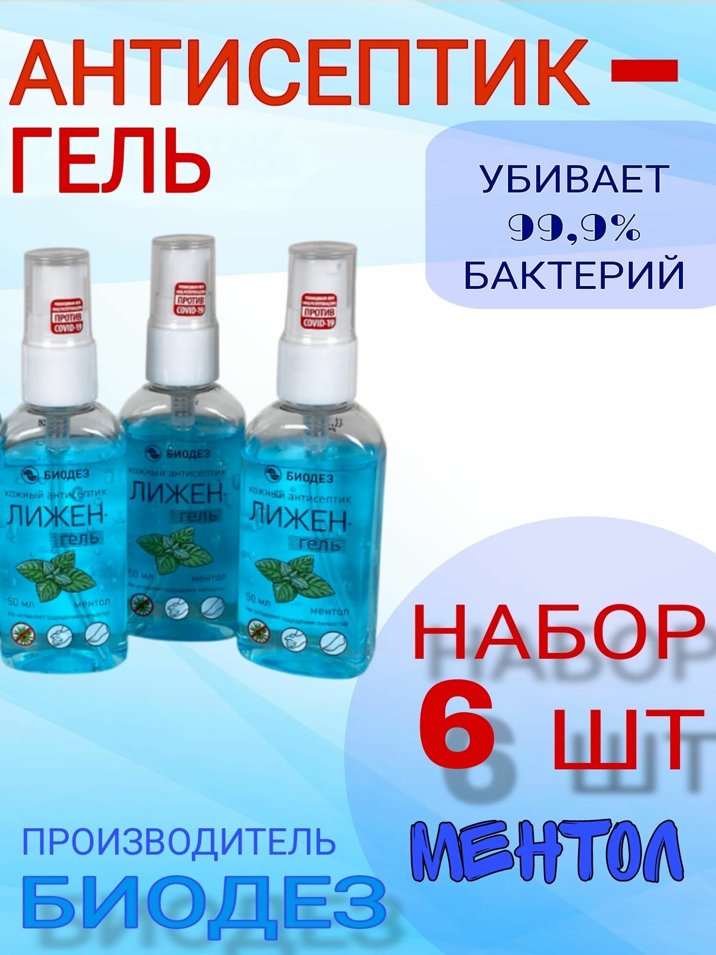10 цен на Кожный антисептик-гель МЕНТОЛ-50мл-6шт набор