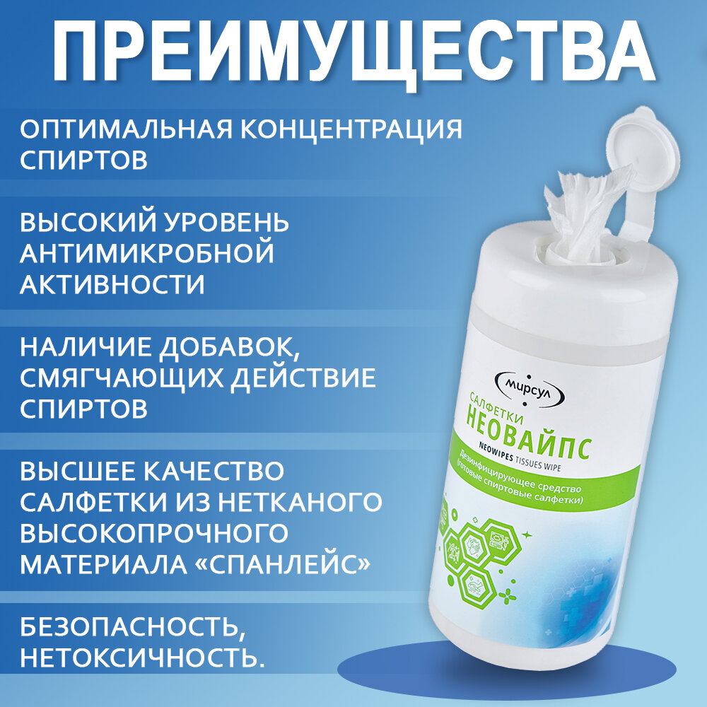 10 цен на Спиртовые салфетки антисептические влажные неовайпс для дезинфекции рук, предметов, поверхностей и оборудования, туба - 60 салфеток