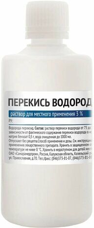 Средство дезинфицирующее Перекись водорода, 3%, пласт. фл. 100 мл, Самарамедпром, ш/к 03009 информация:
