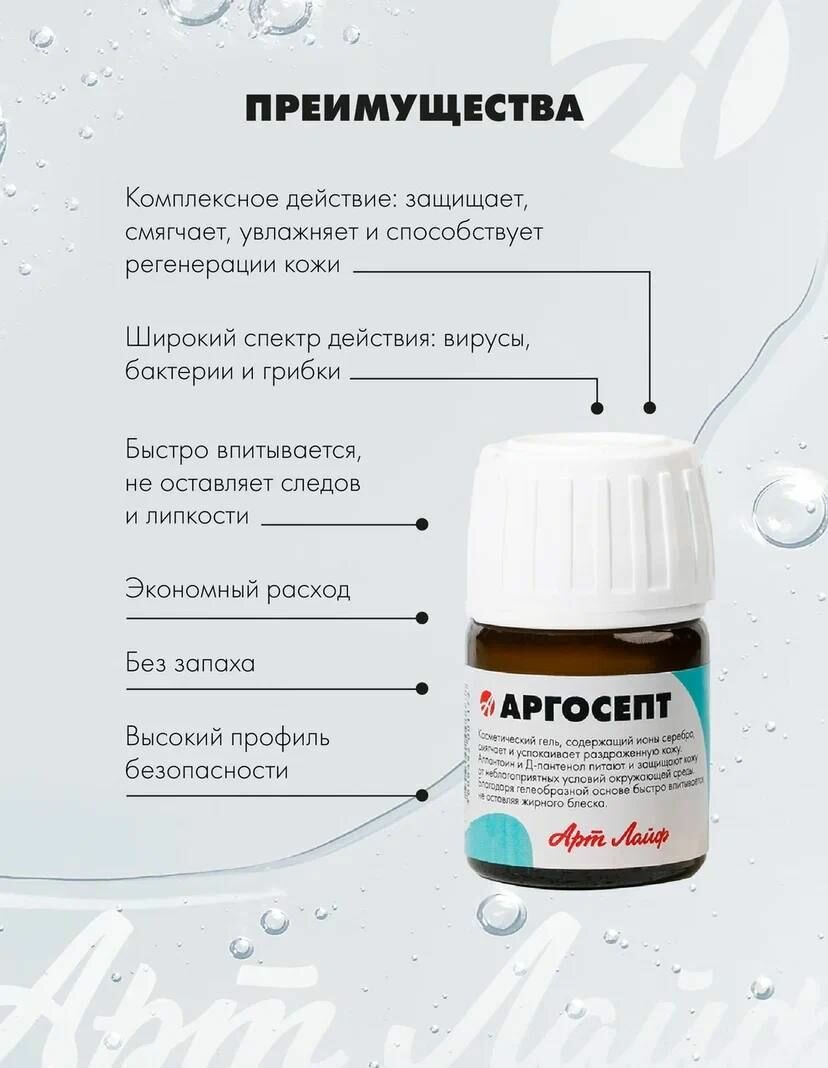 Арт Лайф Аргосепт Гель-антисептик, 20 мл. Высокоэффективное обеззараживающее средство для наружного применения информация: