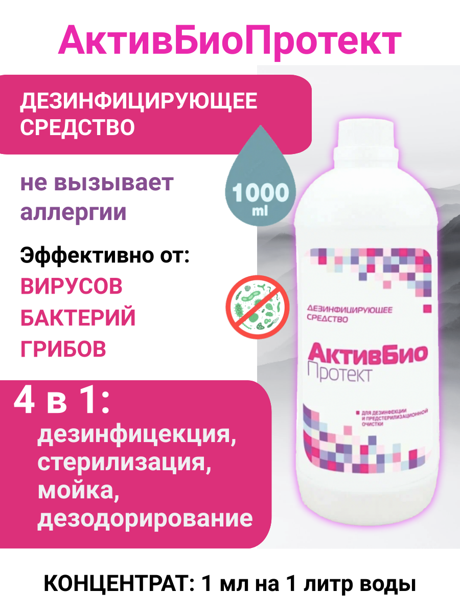10 цен на АктивБиоПротект гипоаллергенное, дезинфицирующее средство, концентрат, 1 литр (средство от плесени и грибка)