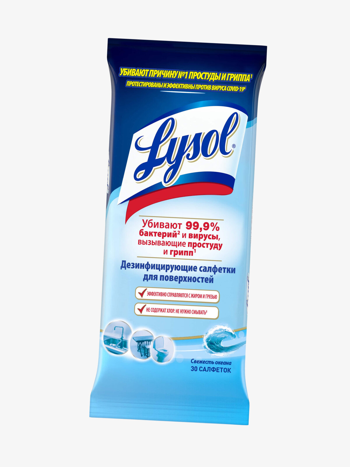 10 цен на Влажные дезинфицирующие салфетки Lysol "Свежесть океана" 30шт, 2 упак.