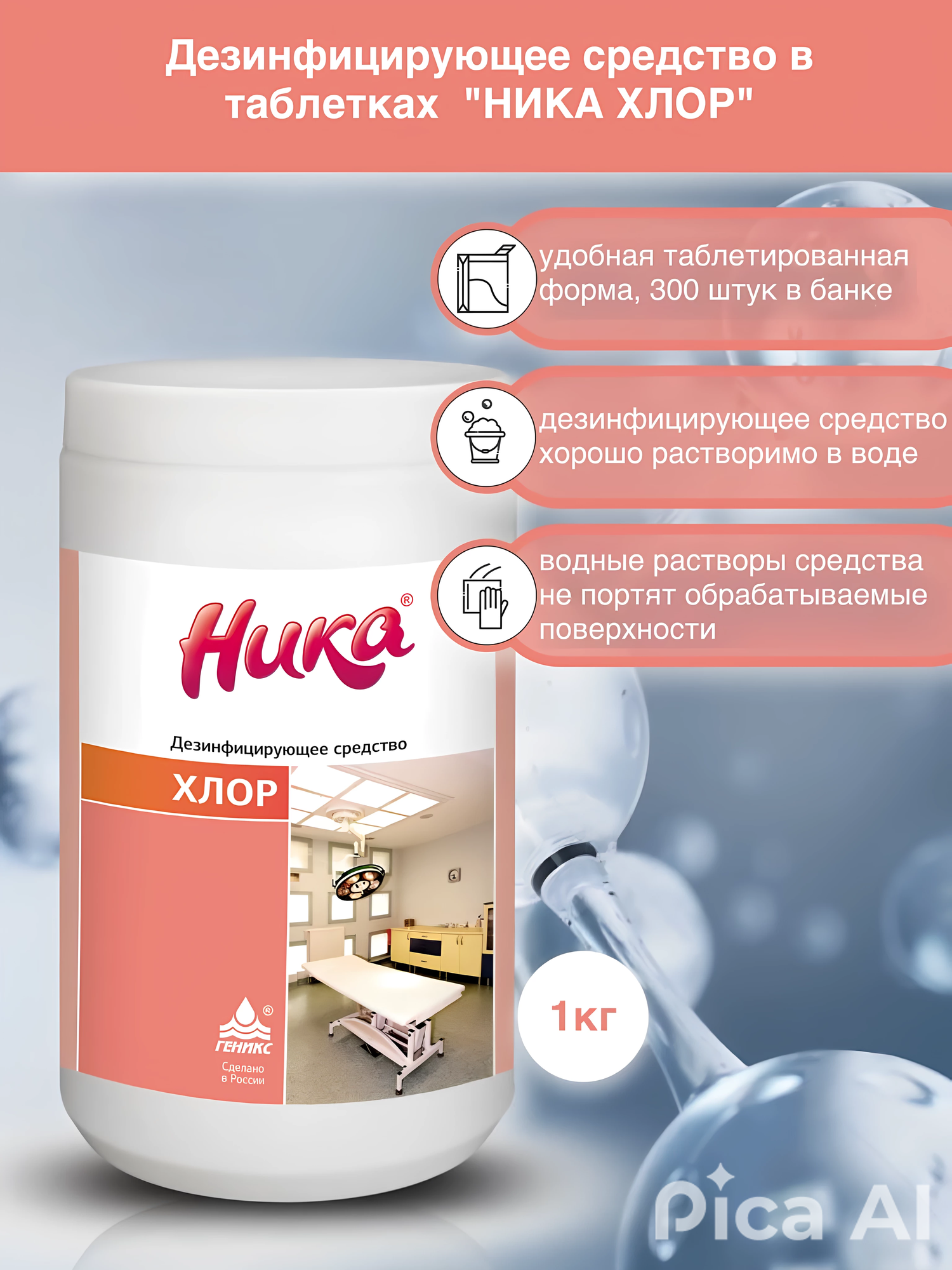 1 шт. "Ника - Хлор" дезинфицирующее средство в таблетках (300 табл) 1кг информация: