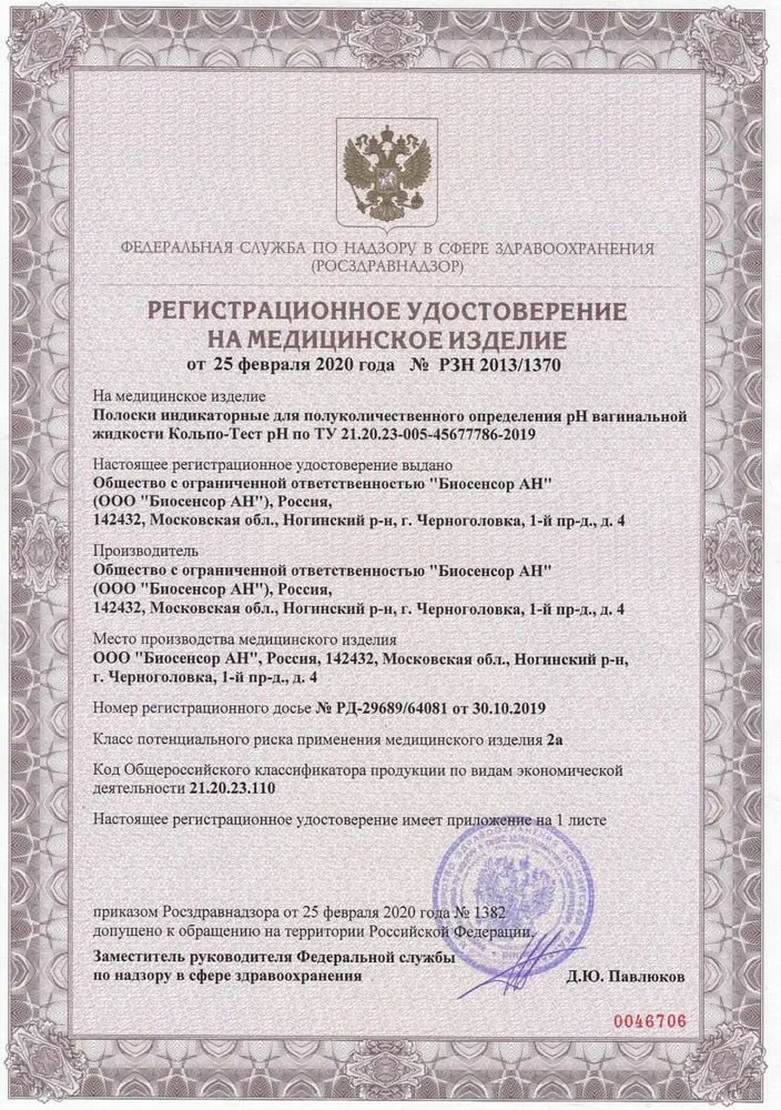 Кольпо-Тест pH, Тест полоски для определения рН вагинальной жидкости, 2 шт информация: