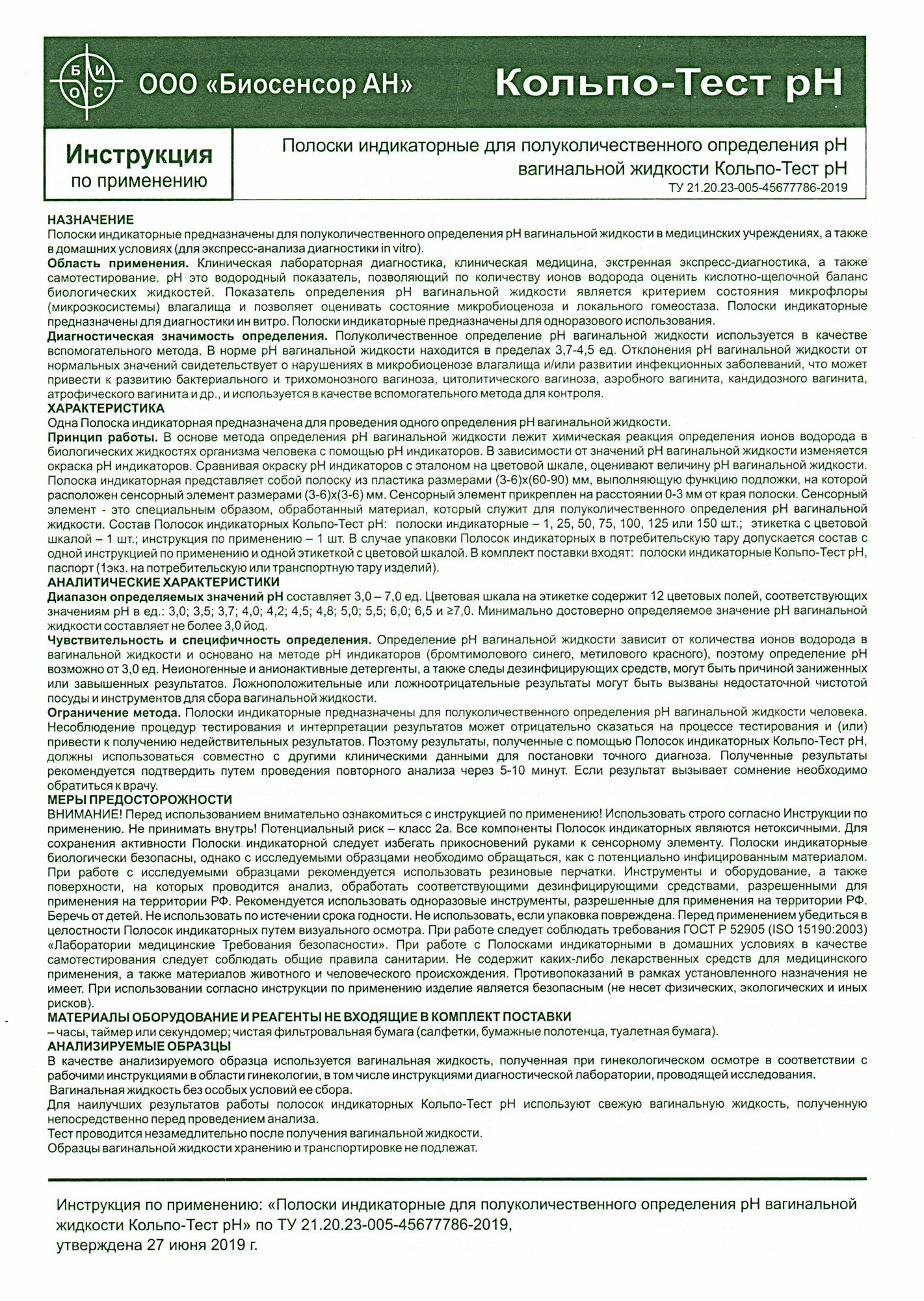 Кольпо-Тест pH, Тест полоски для определения рН вагинальной жидкости, 3 шт информация: