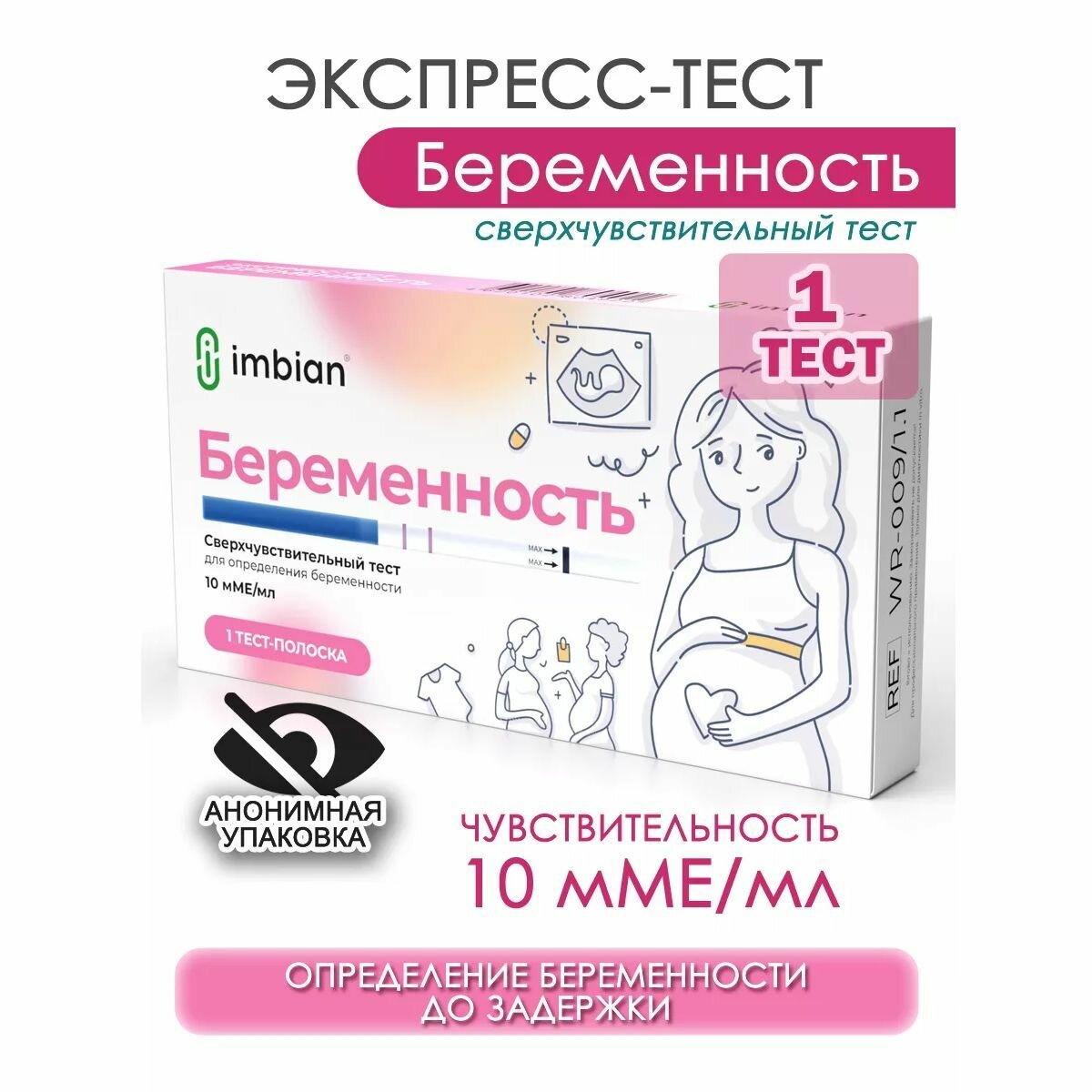 10 цен на Экспресс-тест на беременность 10 мМЕ/мл анонимная упаковка Имбиан