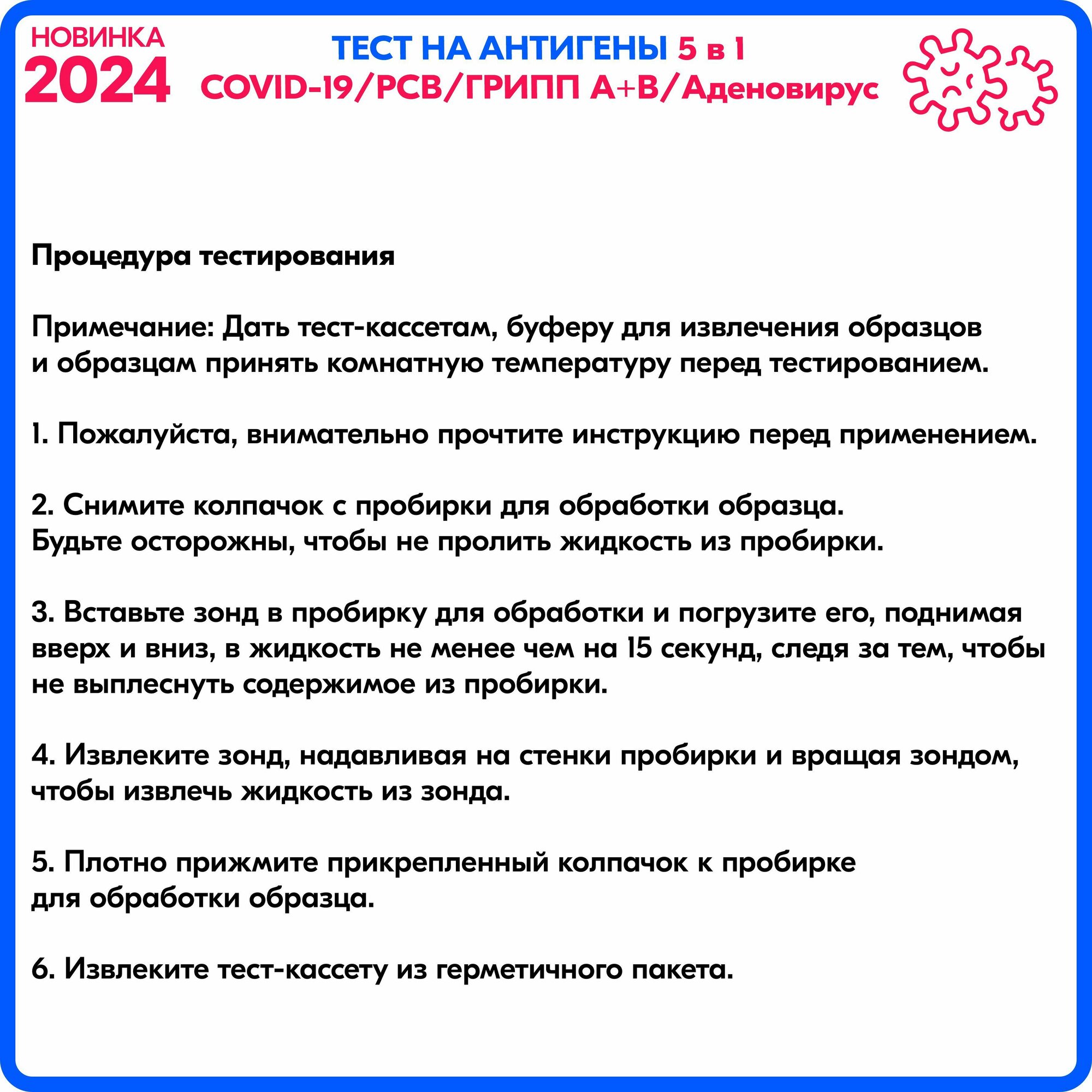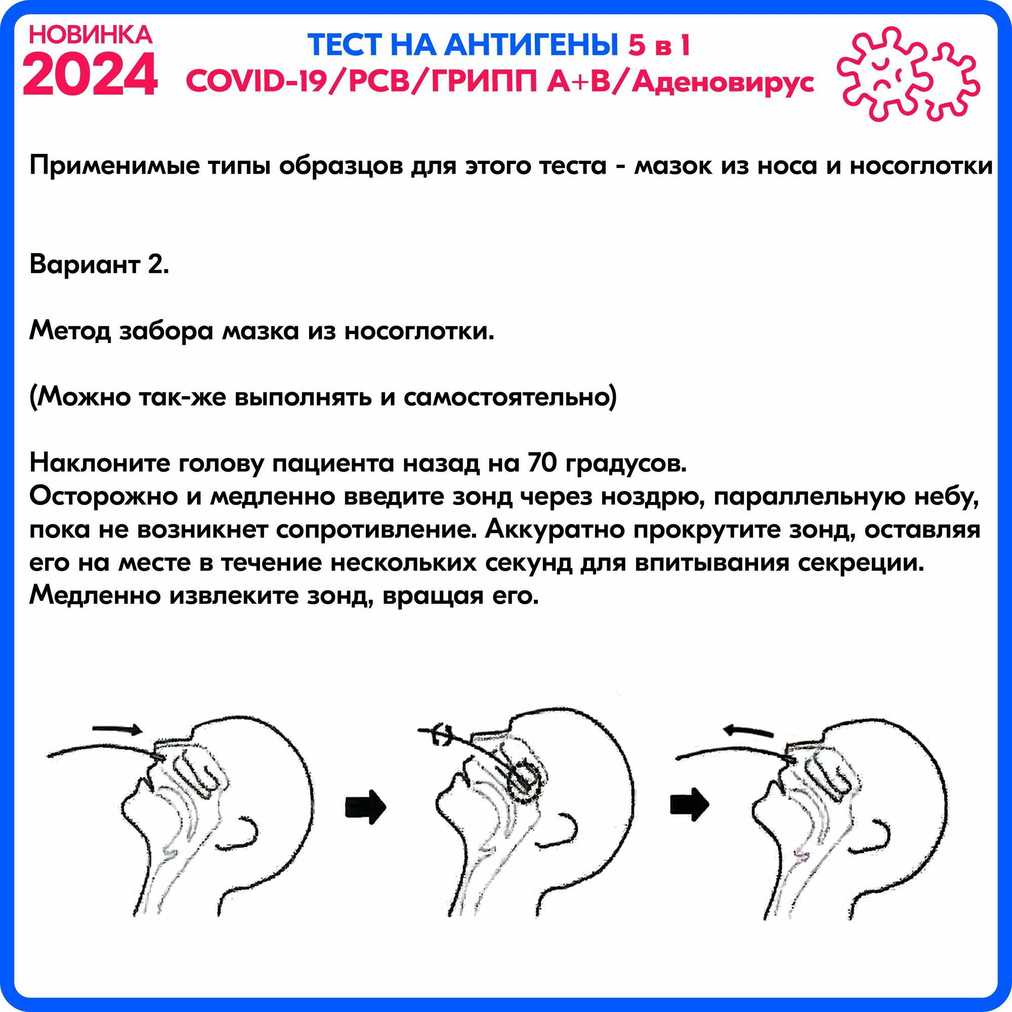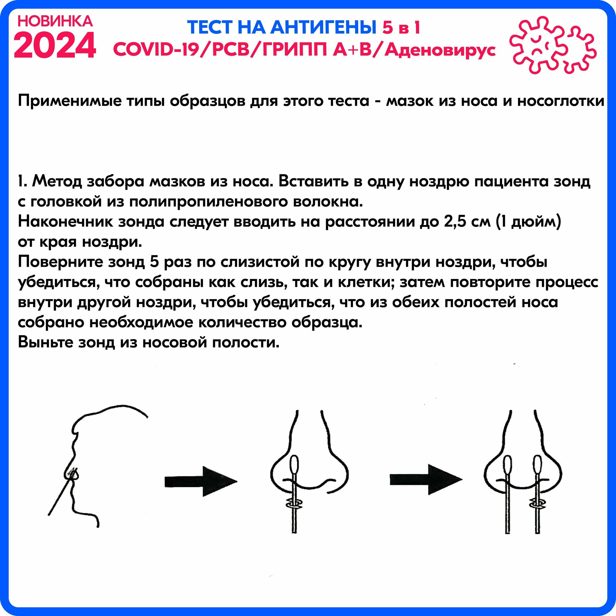 Комбинированный экспресс-тест GenSure на 5 респираторных заболеваний: COVID-19, грипп А и В, РСВ, Аденовирус (1 шт.) информация: