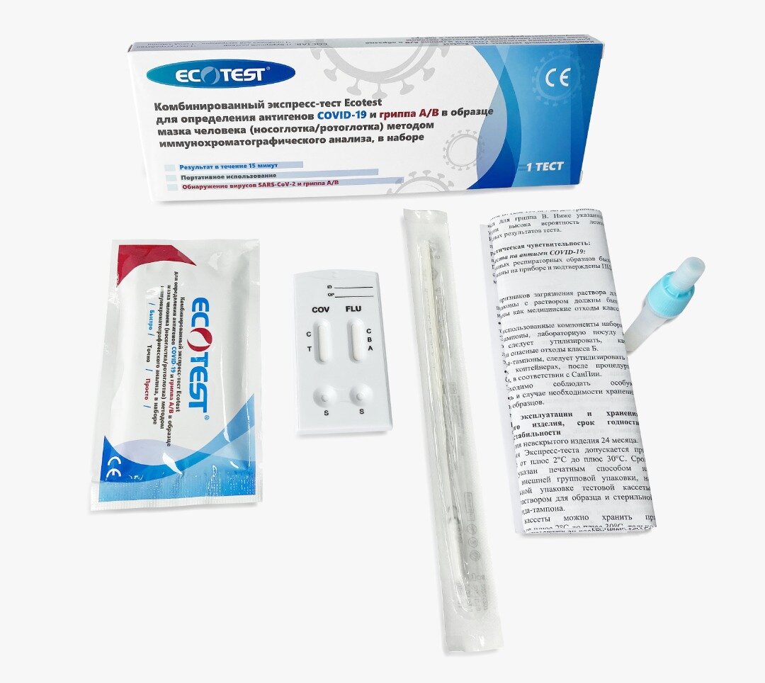 Ecotest Экспресс-тест для определения COVID-19 и грипп A/B, 1 шт. информация: