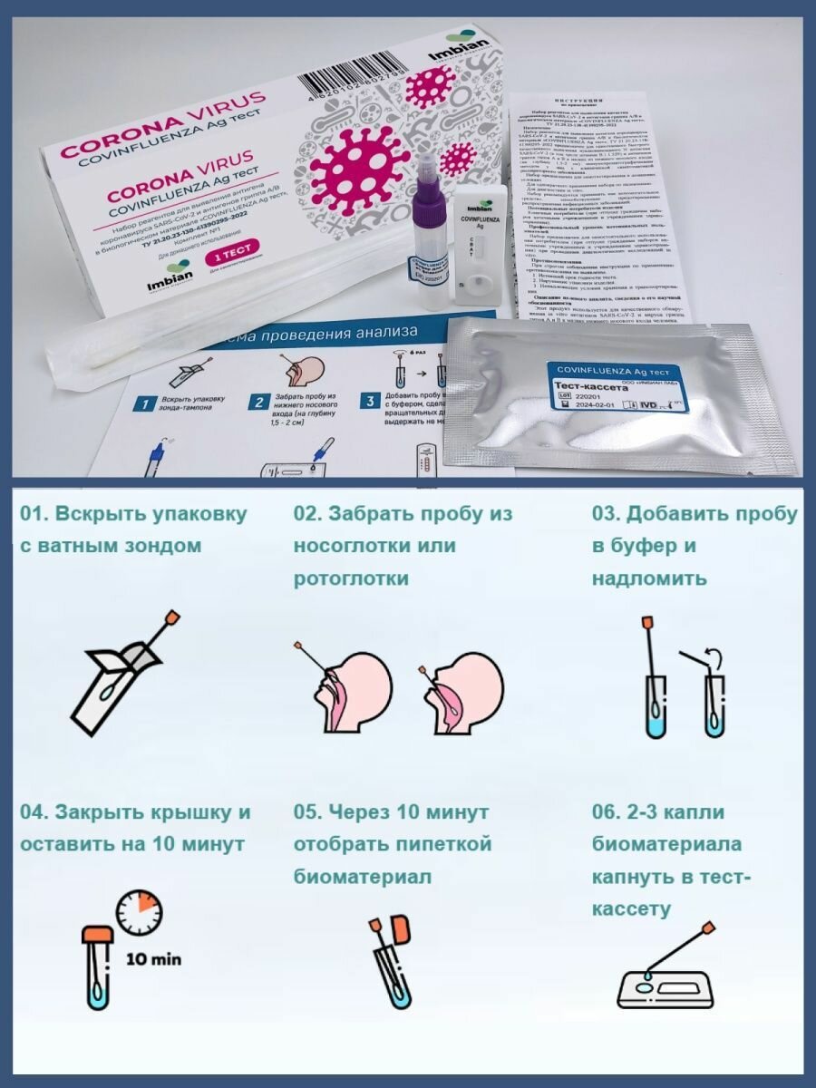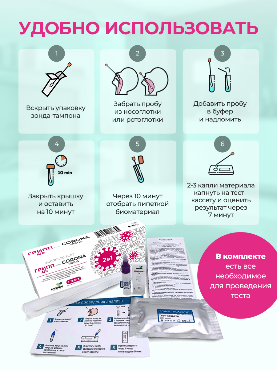 Экспресс-тест на коронавирус и грипп Imbian 2 в 1, для домашнего использования, 3 шт информация: