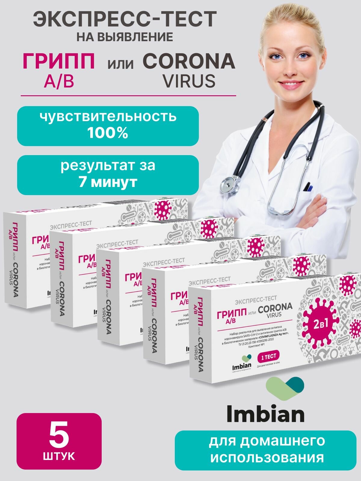 Экспресс-тест на коронавирус и грипп Imbian 2 в 1, для домашнего использования, 5 шт информация: