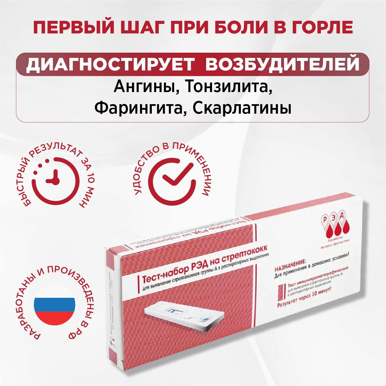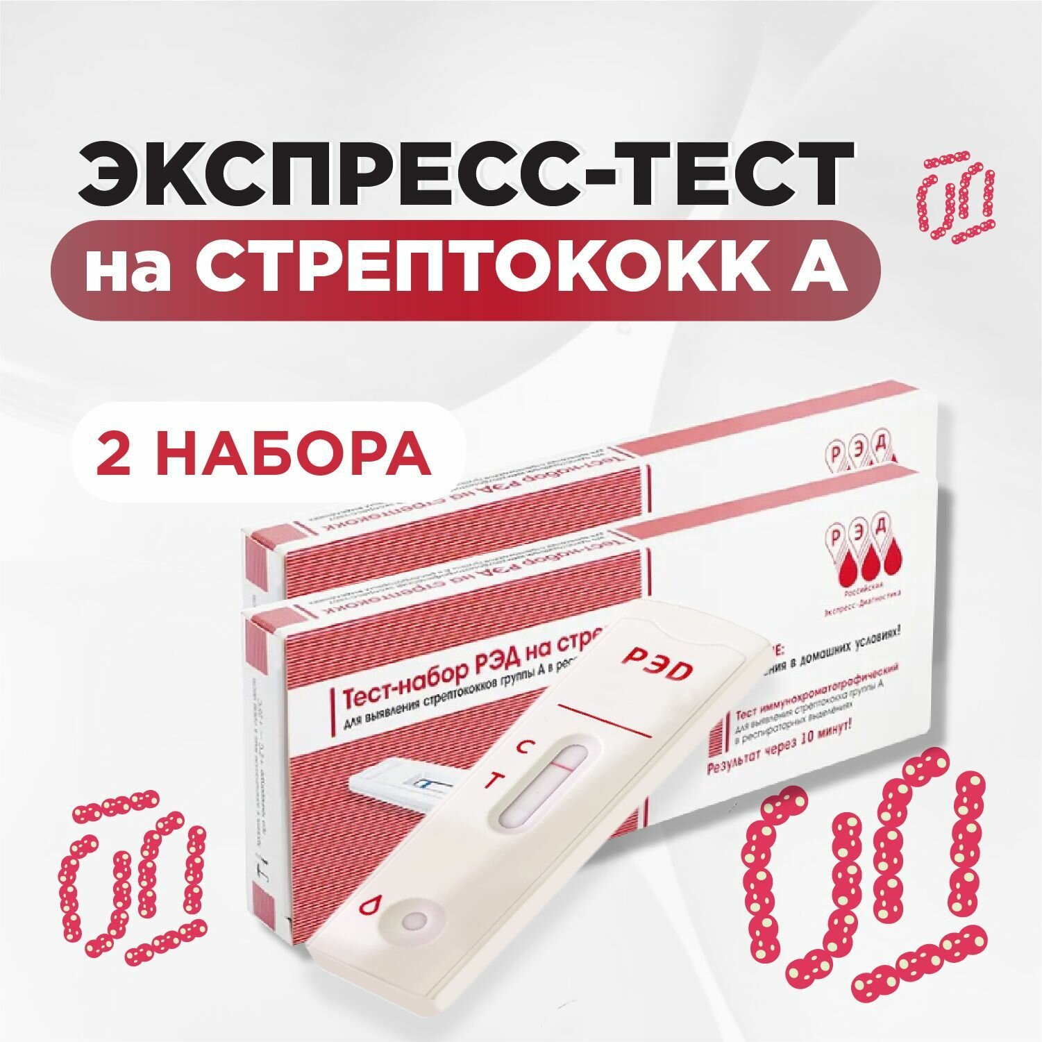Тест на стрептококк РЭД, для выявления антигенов, 2шт информация: