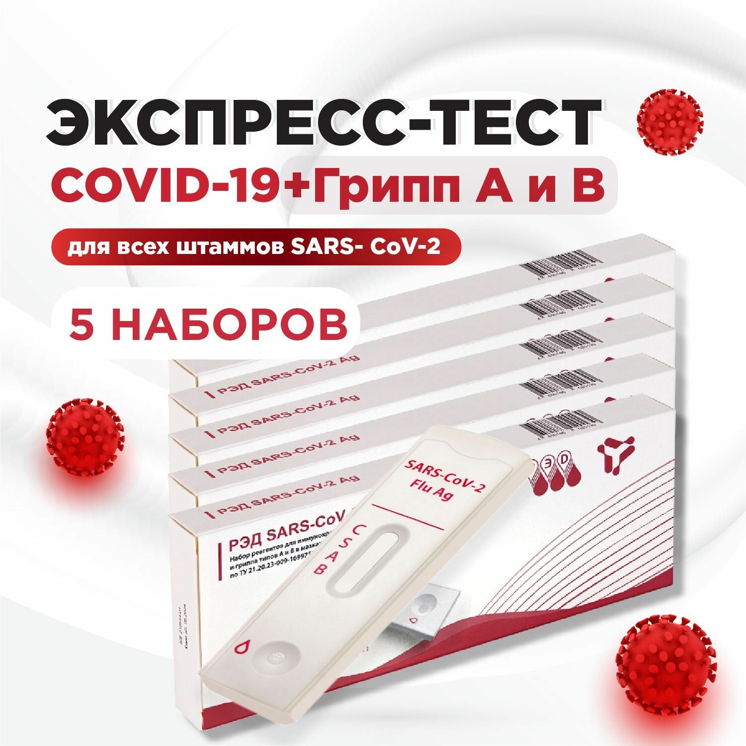 Тест на ковид экспресс и грипп по слюне (covid-19, грипп А и В) набор 5 тестов информация: