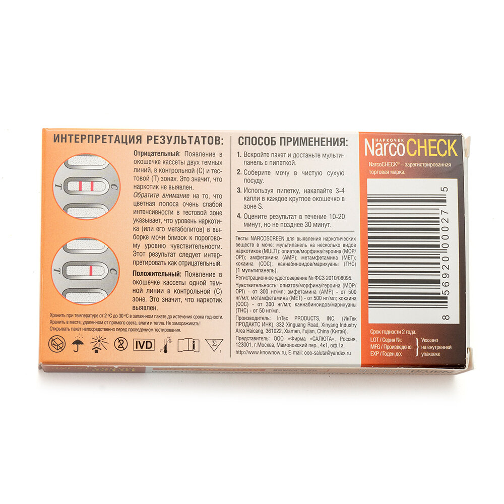 10 цен на Тест Narcocheck для выявления наркотических веществ 5 видов (МОР, ТНС, АМР, МЕТ, СОС) по моче
