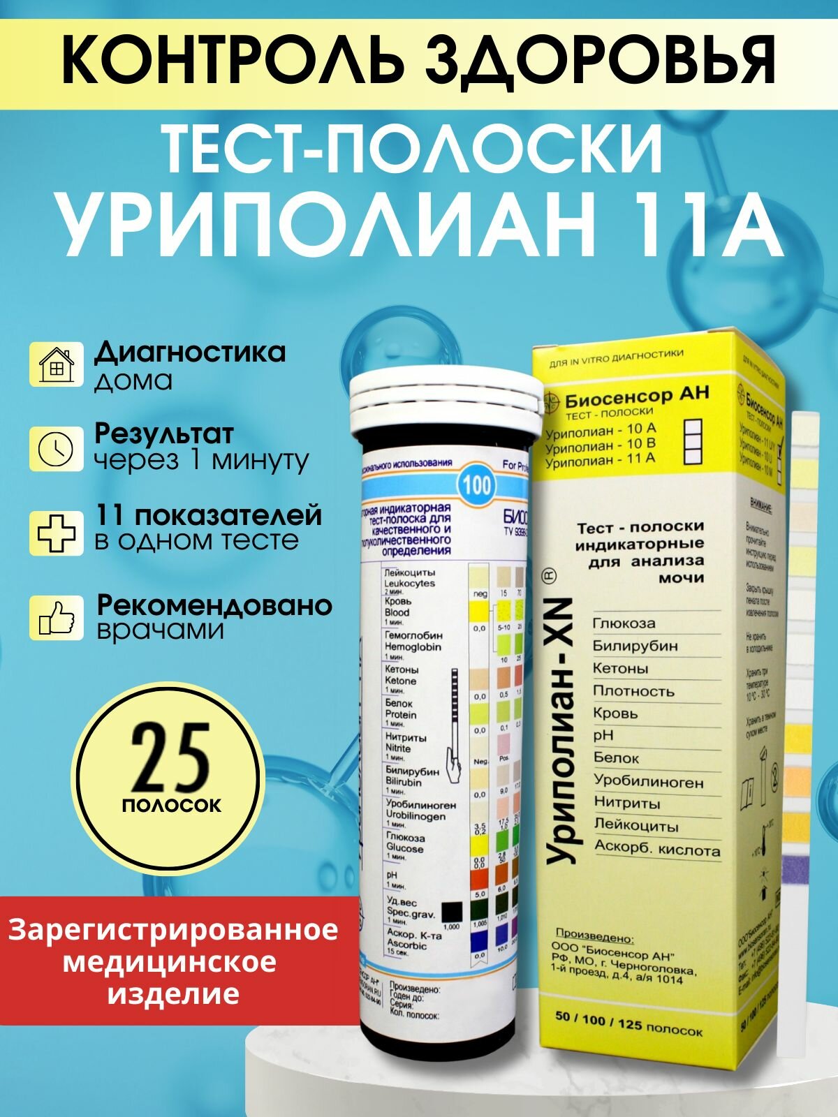 10 цен на Уриполиан 11А (25 полосок) Тест полоски для качественного определения в моче 11 показателей