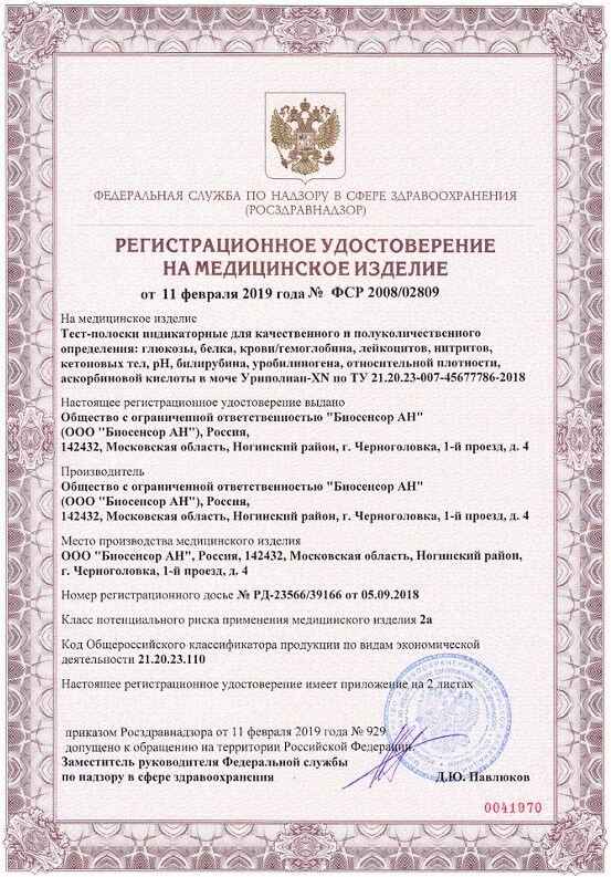 Уриполиан 11А (100 полосок) Тест полоски для качественного определения в моче 11 показателей информация: