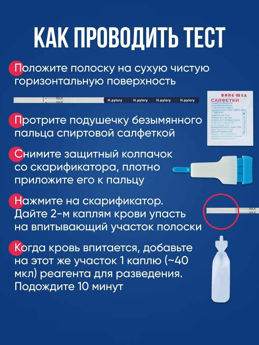 Экспресс-тест на язву гастрит 1 шт. / Комплект для тестирования, определение Helicobacter Pylory по крови / Тест-полоска медицинская информация: