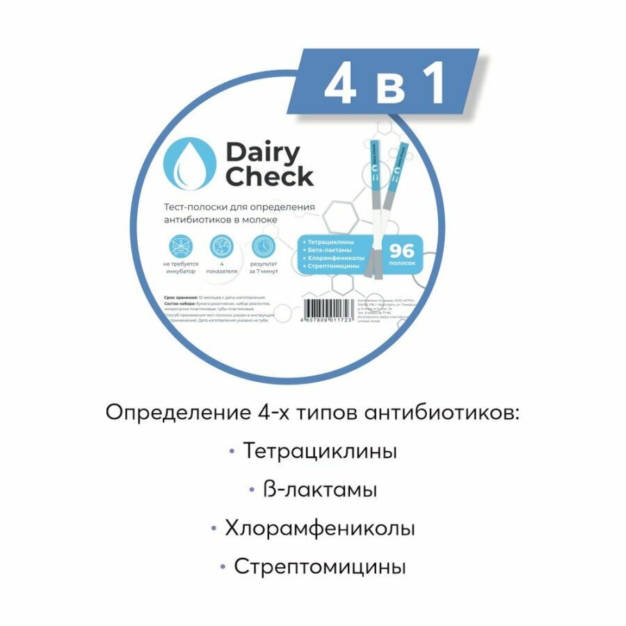 Тест-полоски для молока на антибиотики Dairy Check 4в1, 96 шт. информация: