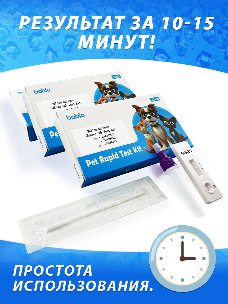 Экспресс-тест на бешенство для собак и кошек Babio Rabies Ag Набор для быстрой диагностики антигена вируса бешенства в слюне 5 test информация: