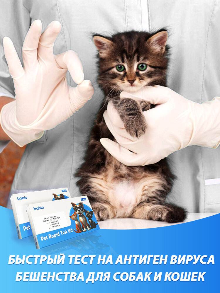 Отзывы на Экспресс-тест на бешенство для собак и кошек Babio Rabies Ag Набор для быстрой диагностики антигена вируса бешенства в слюне 5 test