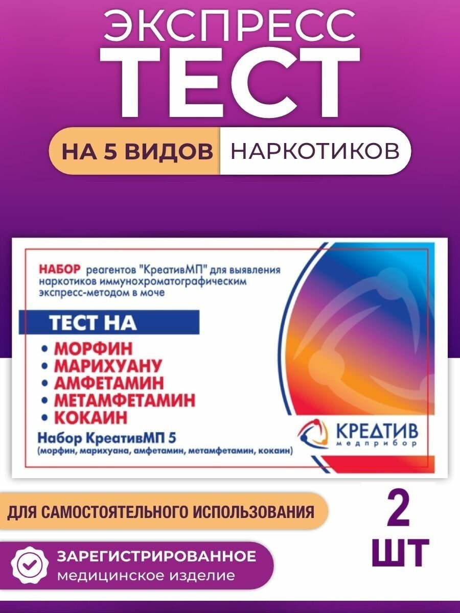 КреативМП-5П Тест для определения 5 видов наркотиков, 2 штуки информация: