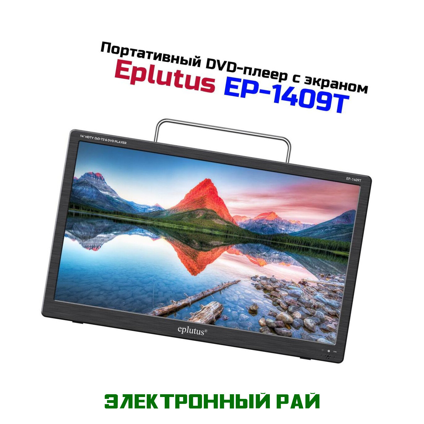Отзывы на Портативный DVD плеер DVB-T2 14 дюймов Eplutus Mod: EP-1409Т, переносной DVD с телевизором 1336x768р. Соотношение сторон экрана: 16:9.