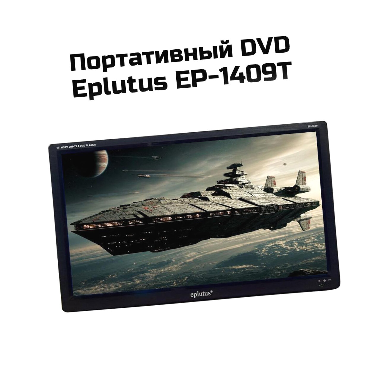 Отзывы на Портативный DVD плеер с экраном 1336x768 DVB-T2 14" Eplutus 1409Т (TFT) (M60993PO), мобильный DVD с тюнером. Емкость аккумулятора: 2500 мАч.