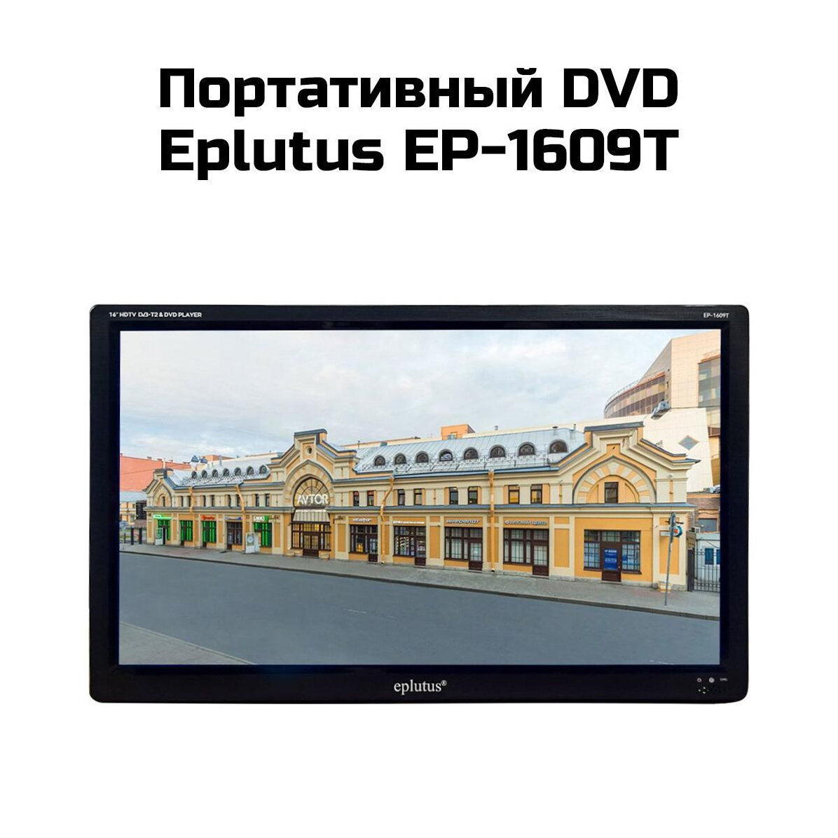 10 цен на Портативное DVD с экраном DVB-T2 16 дюймов Eplutus EP-1609Т (K6272RU), мобильный DVD с экраном. Встроенный плеер, запись видео. Встроенный АКБ 2500.