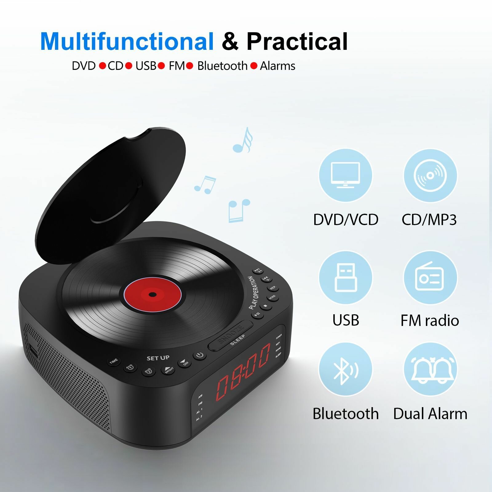 10 цен на DVD-плееры для телевизора, CD-плееры для дома с будильником, BOOMBOX CD-плеер с Bluetooth и радио, USB-порты для воспроизведения и зарядки-KGTRG