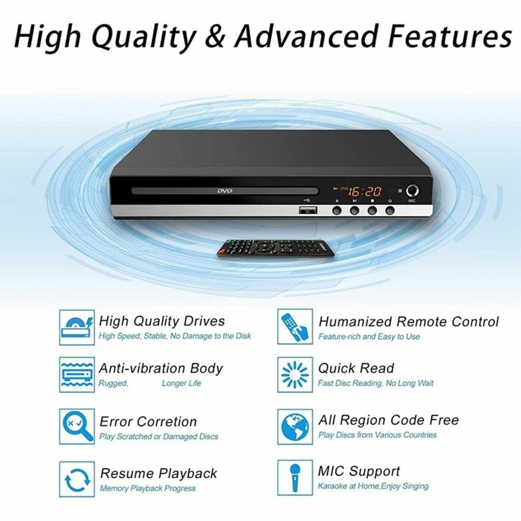 HDMI, Домашний мини-DVD-плеер, проигрыватели компакт-дисков для телевизора, AV-стереовыход USB 1080P, Домашний кинотеатр DVD