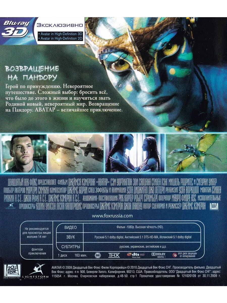 Аватар (2D и Real 3D версия) (BD-R 50GB Blu-Ray) информация: