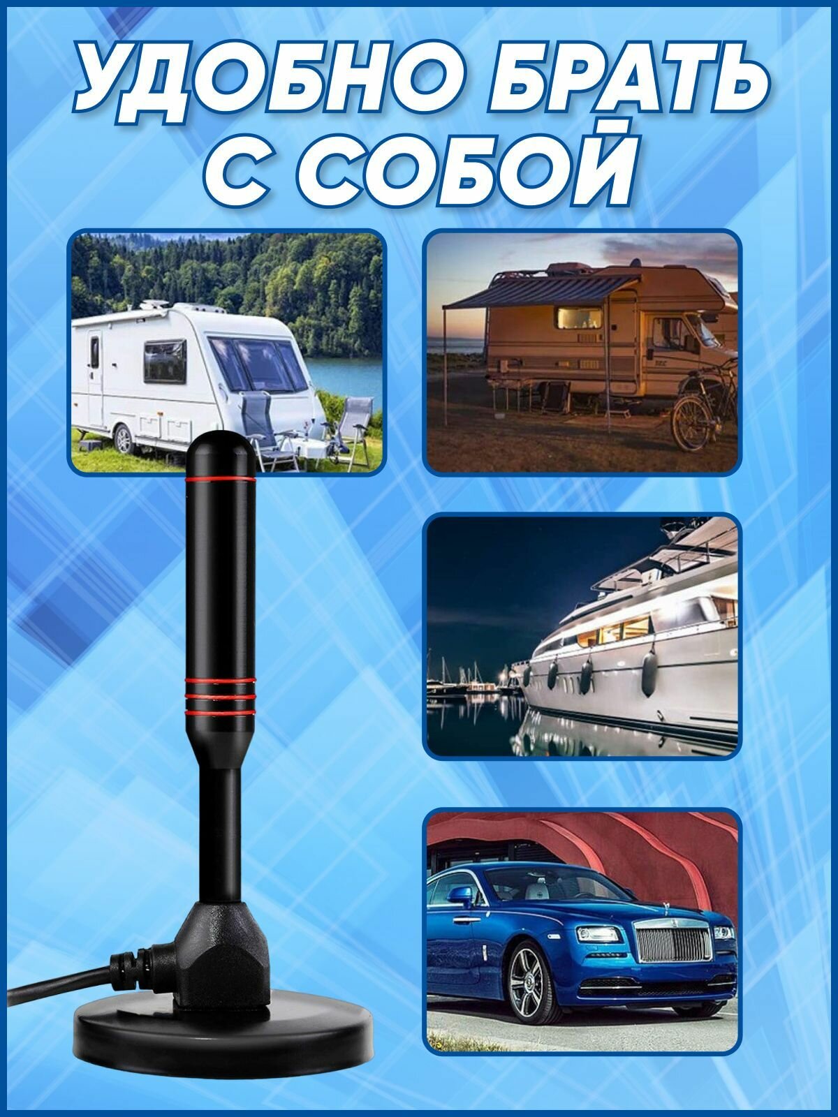 10 цен на Антенна комнатная активная для цифрового тв, 360 градусов, с магнитом, черная
