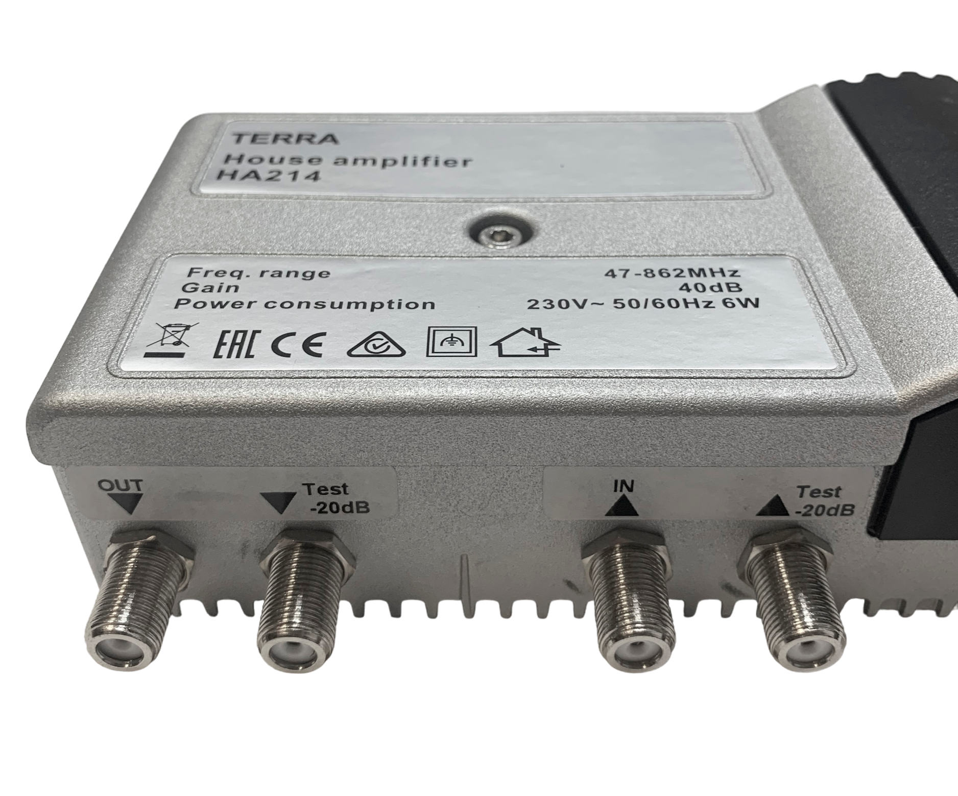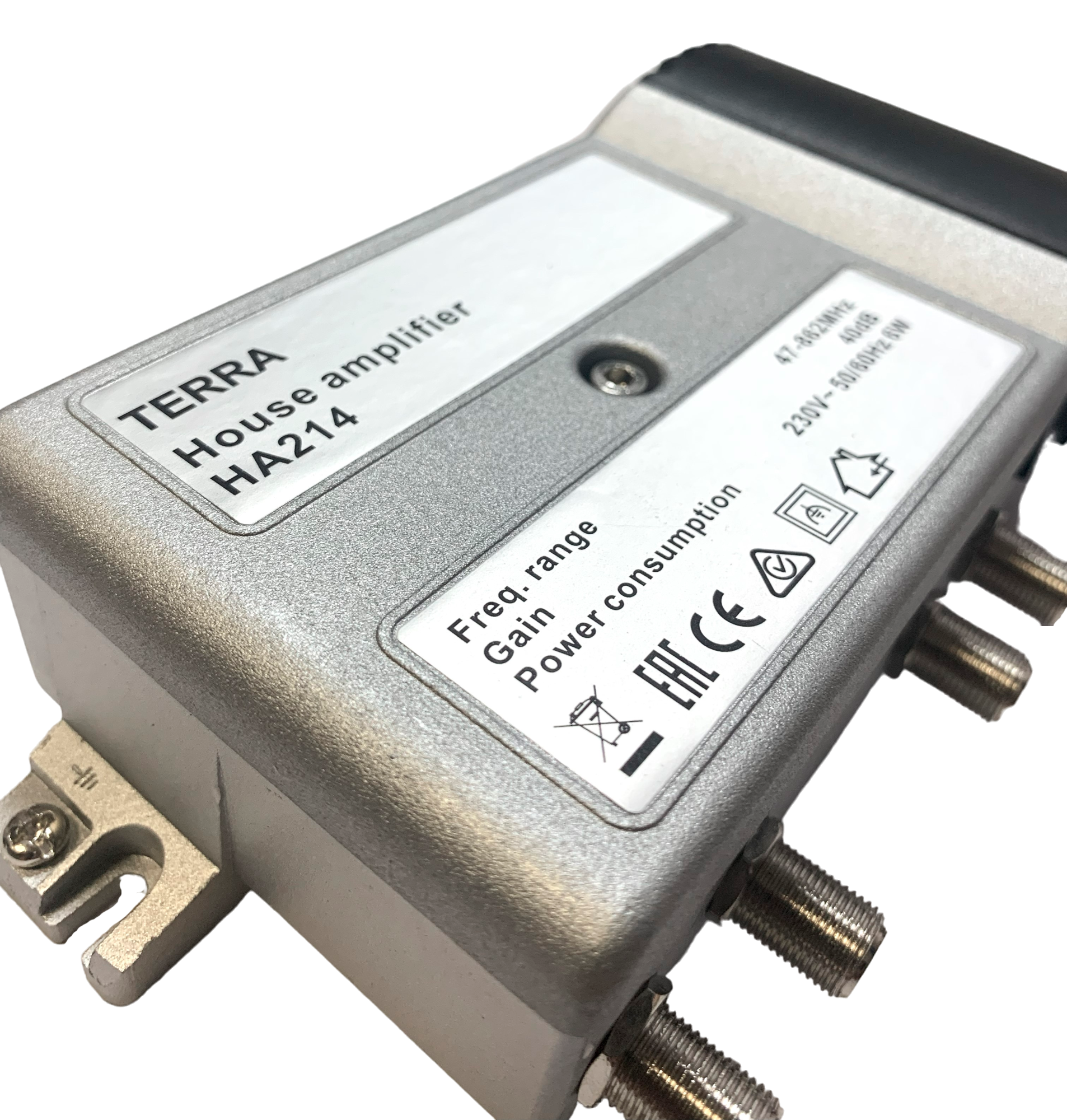 Усилитель телевизионного сигнала, домовой, большой мощности TERRA HA214 40дБ, 109 ДбмВ (HA126) информация: