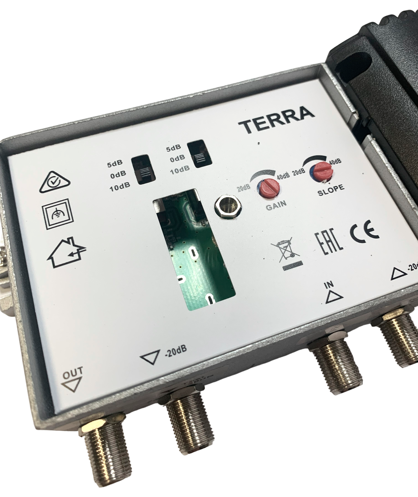 10 цен на Усилитель телевизионного сигнала, домовой, большой мощности TERRA HA214 40дБ, 109 ДбмВ (HA126)