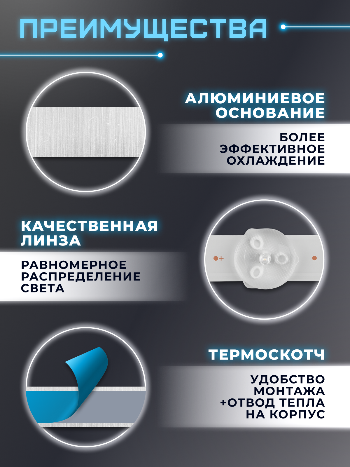 Отзывы на Подсветка для телевизора Philips 43PFS4012/12, AOC LE43M3570, K430WDK3, 43PFS4062 и др 43" 6V / 3 led / 8 шт 389mm