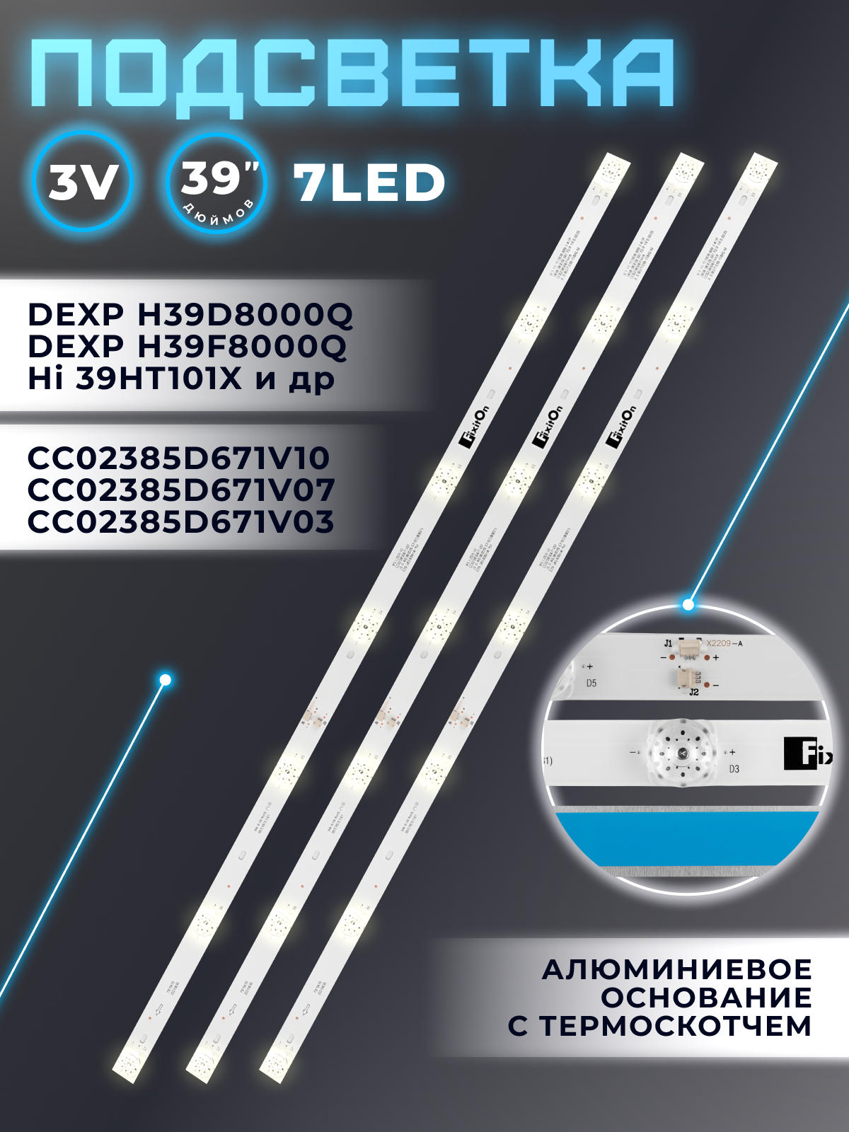 10 цен на Подсветка для DEXP H39D8000Q, Hi 39HT101X, Digma DM-LED39R201BT2, Starwind SW-LED39R301BT2 / 39" 3V 7 led 3 шт 675mm