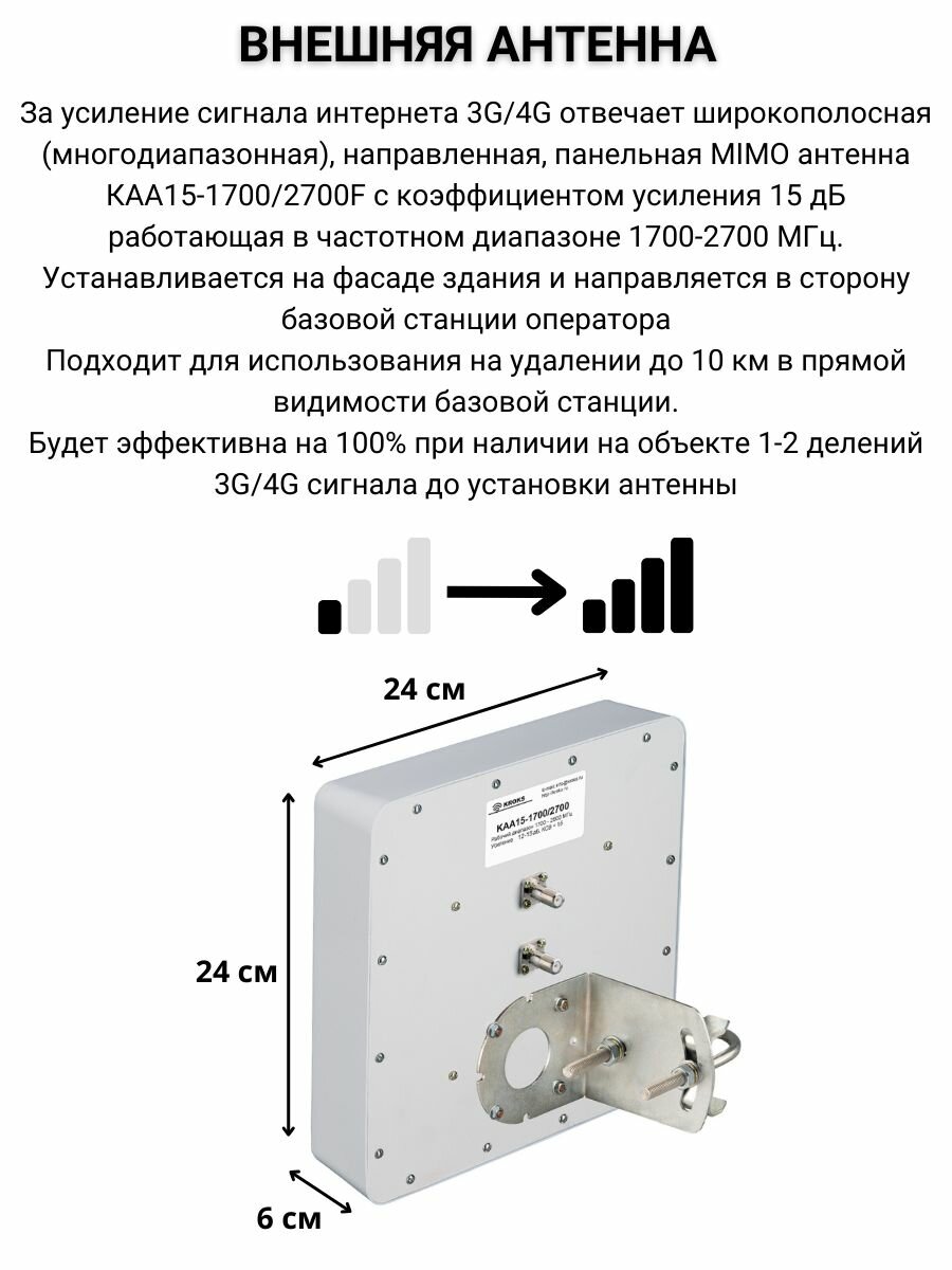 Усилитель интернет сигнала 2G/3G/WiFi/4G антенна KROKS KAA15 MIMO 75 Ом 15 dBi -F + кабель + кронштейн + пигтейлы TS9 информация: