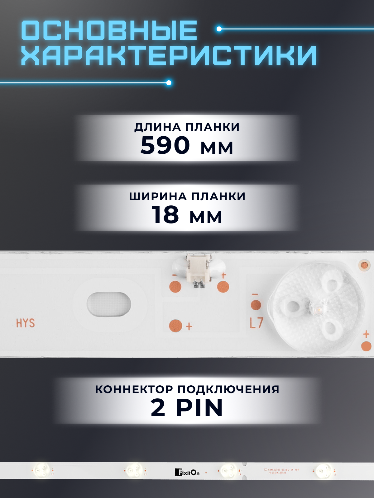 Подсветка для телевизора DEXP H32C7200K, KSKK32D07-ZC21FG-04, LSC320AN10-H02 / 32" 3V 7 led (комплект 3 шт) 590mm информация:
