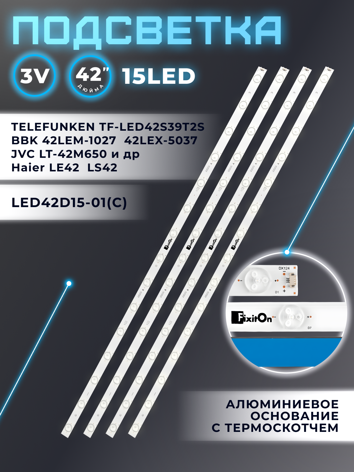 Подсветка LED42D15-01(C) 3034201520V для Haier LE42B310G, LE42B8000TF, JVC LT-42M650, Erisson 42LET41T2, TELEFUNKEN и др информация: