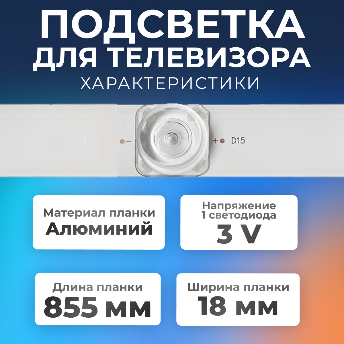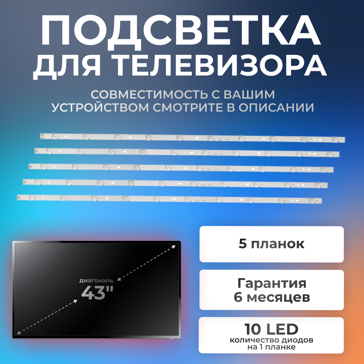 Отзывы на Подсветка для JVC LT-43M650, LT-43M450, Haier LE43U6500U, KIVI 43UK30G, 43FK30G / 43" 3V 10 led (5 шт) 855mm (4A+1B)