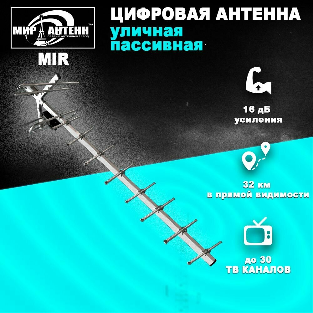 Пассивная антенна для телевизора уличная Мир-Антенн-Мир-15 DVB-T2 информация: