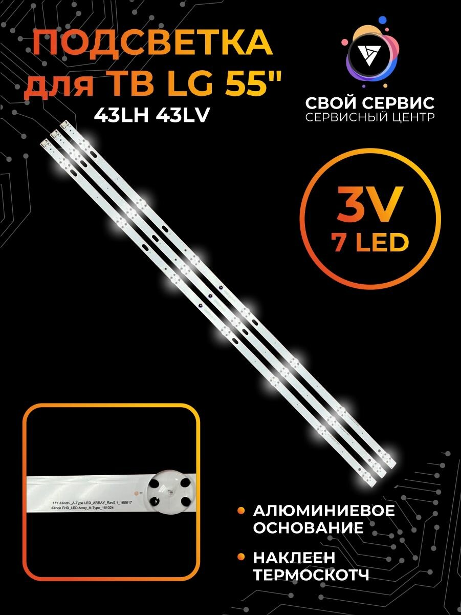 Отзывы на Подсветка для телевизоров LG Innotek 17Y 43inch_A-Type 43LH 43LJ 43LV 43UJ 43UK 43UV AGF79078001 LC43490059A, 43LJ61_FHD, 43UJ65_UHD_ L (комплект, 3 шт)