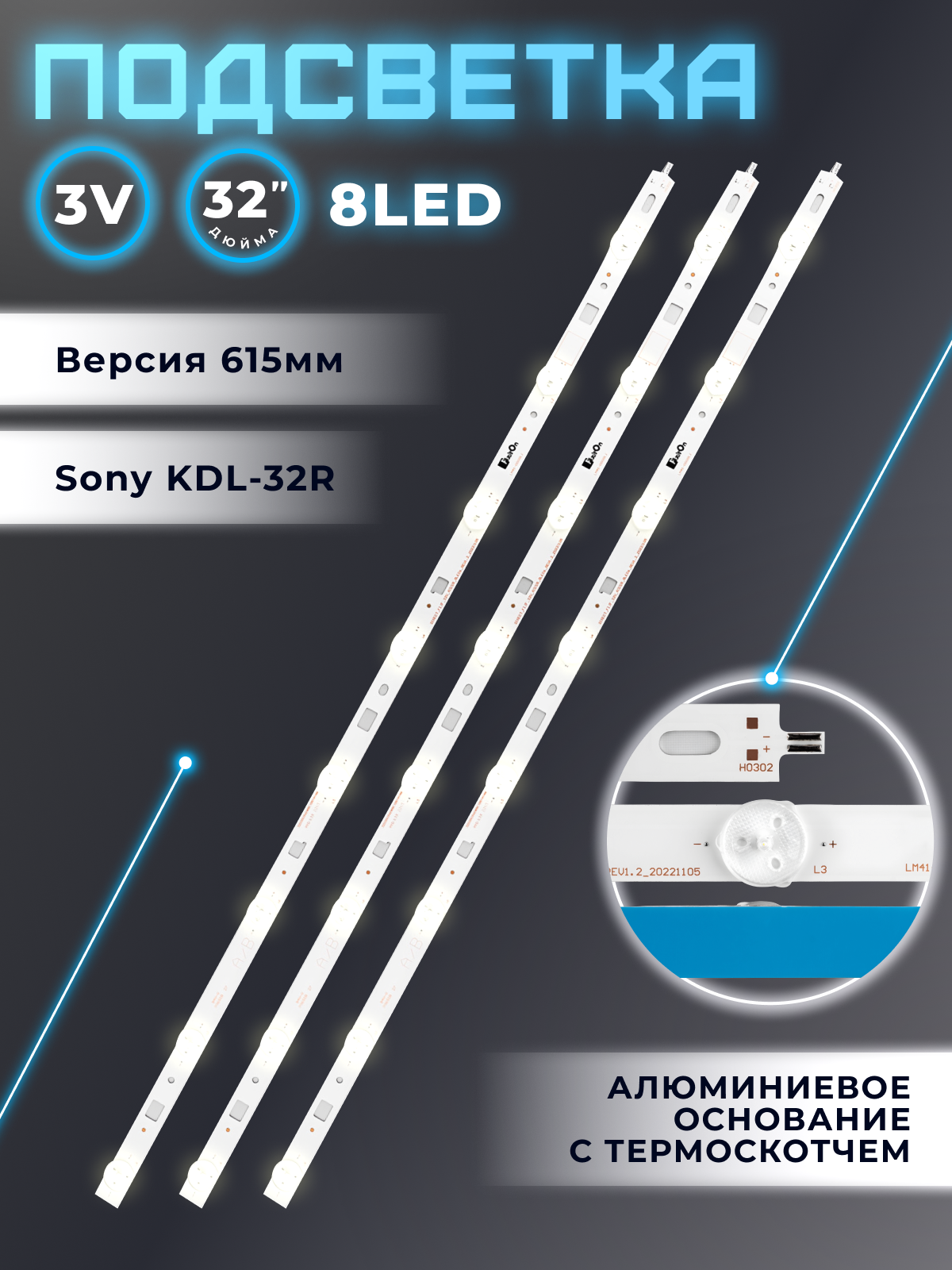 Отзывы на Подсветка LM41-00091J для телевизоров Sony KDL-32R433B, KDL-32R303C, KDL-32RE303, KDL-32R303B и др / 32" 3V 8 led 615mm