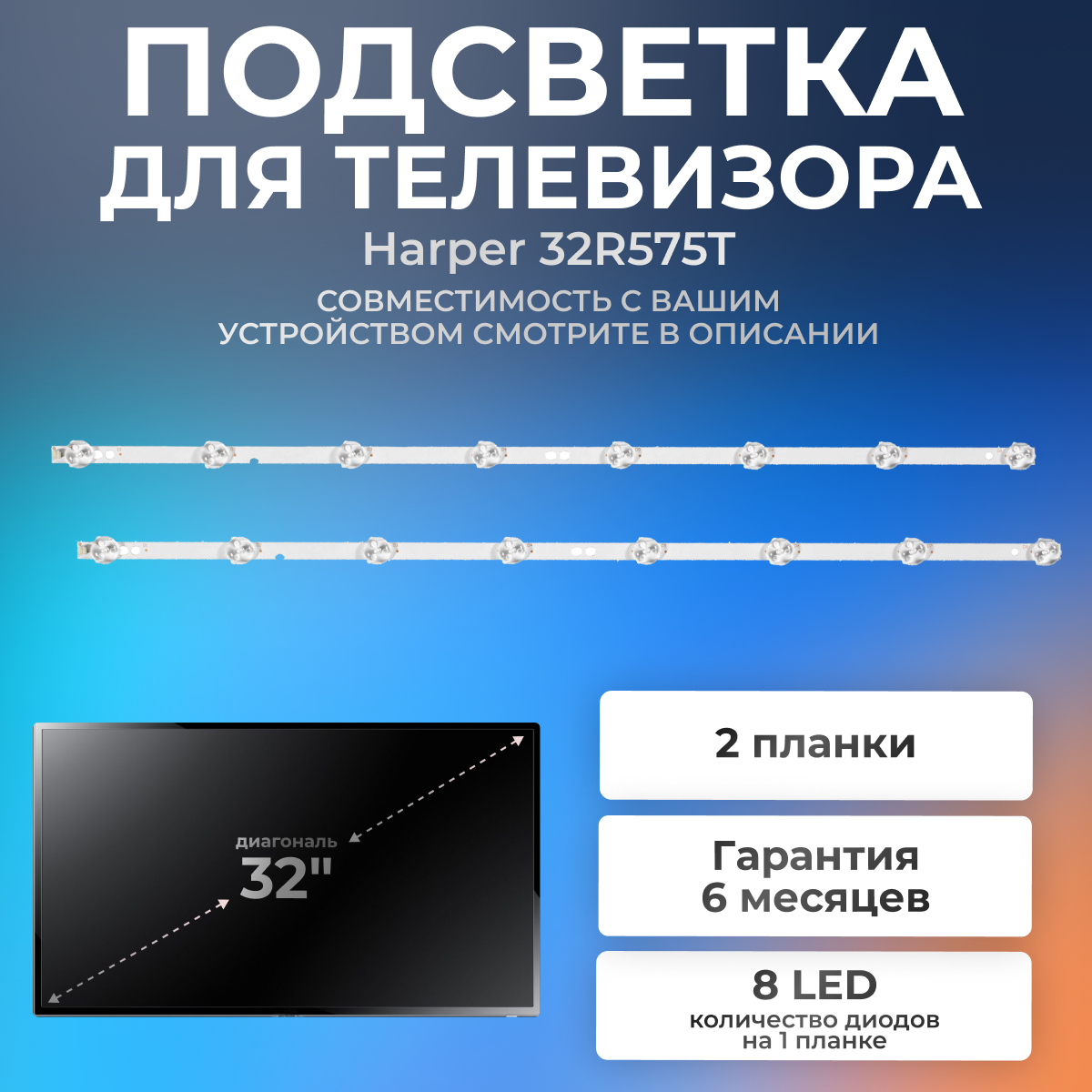 Отзывы на Подсветка HD32L71A-V01 DSBJ-WG для телевизора Harper 32R575T, T320XVN02 / 32" 3V 8 led (комплект 2 шт) 565mm
