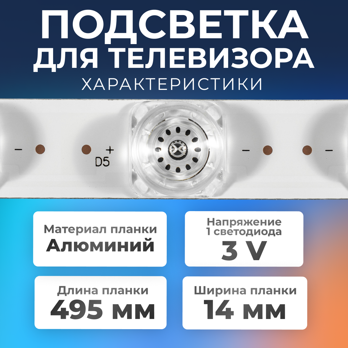 Отзывы на Подсветка для Haier LE50K5500TF, BBK 50LEX-5039, TELEFUNKEN TF-LED50S13T2, Haier LE50U6500TF / 50" 3V 6 led (12 шт)